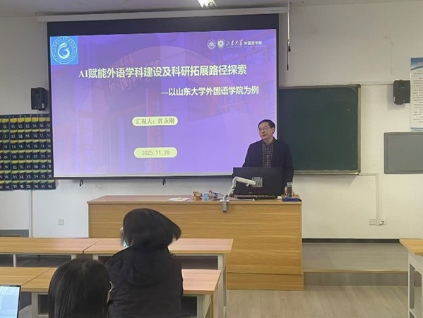 11月28日下午,外国语学院特邀山东大学苏永刚教授带来题为“AI赋能外语学科建设及科研拓展路径探索”的专题学术报告。报告以山东大学外国语学院的实践经验为蓝本,围绕学科发展核心议题展开深度分享,为全院师生带来了兼具理论高度与实践价值的思想启迪。