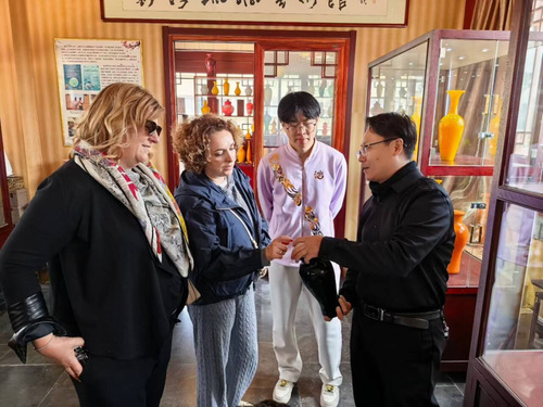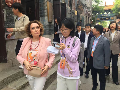 4月21日至22日,志愿者提前入驻齐盛国际宾馆开展全流程演练。大会期间,翻译保障组高效精准完成多份文段材料的翻译工作,为大会信息的准确传递提供专业支撑;接待保障组陪同外宾走进淄博陶瓷琉璃博物馆、周村古商城等文化地标。志愿者们以流利的外语和出色的组织协调能力,向外宾生动介绍淄博的文化特色与历史渊源,使外宾在“烟火气”与“文化味”中感知一个真实、立体的淄博,用实际行动擦亮了淄博对外宣传的“青春名片”。