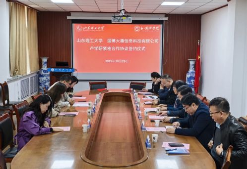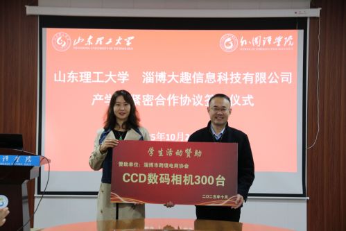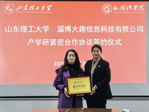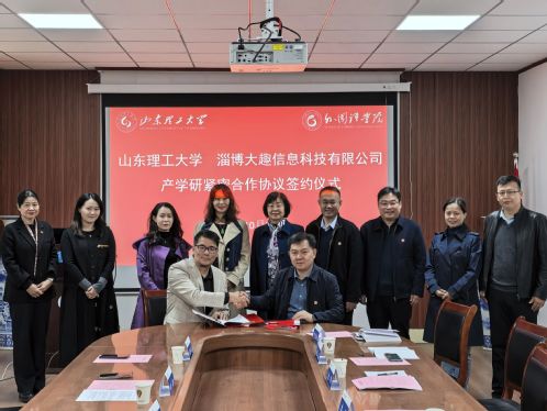 为推动淄博市跨境电商发展,助力外语复合型人才培养,10月29日,我院在8号教学楼111教室举办山东理工大学与淄博大趣信息科技有限公司产学研紧密合作协议签约仪式。淄博大趣信息科技有限公司董事长康辉,淄博市跨境电商协会会长、大趣信息科技有限公司总经理孙朋,淄博市跨境电商协会秘书长王一一等代表应邀出席,山东理工大学外国语学院党委书记李静,山东理工大学合作发展处副处长李忠华以及学院领导班子成员及教师代表参加会议。会议由副院长于志涛主持。