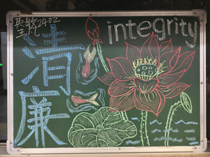 本次大赛由院新竹未来教师协会精心策划组织,通过线上线下多渠道宣传动员,得到同学们的热烈响应与积极参与。参赛作品紧扣“清廉”核心,内容鲜活、形式多元:既有以“荷花、竹子”等意象诠释廉洁品格的手绘创作,画面简洁生动;也有融入英文单词、短语的创意表达,将“清廉”理念与英语专业特色相融合,用多语言视角传递崇廉内涵,同时也表达了我院青年学子对“崇廉尚洁”的深刻理解。这些作品不仅展现了同学们扎实的创作功底,更传递出新时代青年对廉洁文化的认同与传承,为营造风清气正的文化氛围注入了青春力量。每一块小黑板都凝聚着同学们的巧思与匠心,生动传递出新时代青年的清廉追求与正气风骨。