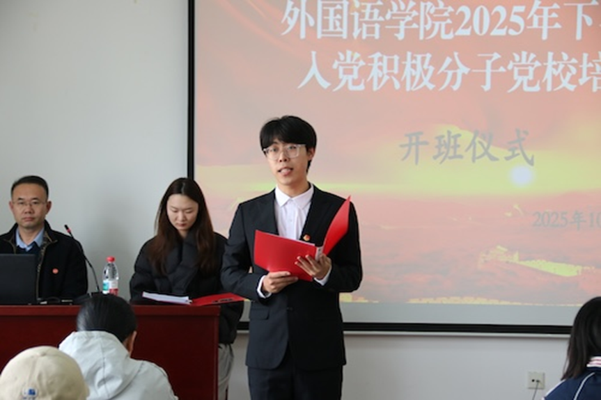 为切实加强入党积极分子队伍建设,扎实做好教育培养工作,10月30日下午,我院在8号教学楼418教室举行2025年下半年入党积极分子党校培训开班仪式。学院党委副书记、纪委书记宋伟出席仪式,99名入党积极分子参加,仪式由学院辅导员吴羽希主持。