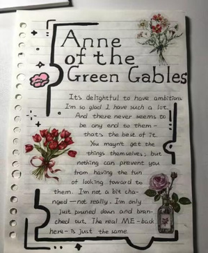 活动中,学生围绕《百年孤独》《简·爱》等经典著作,通过版面设计、色彩运用与插图绘制,将阅读感悟转化为形式多样、富有创意的手账作品。部分作品以思维导图梳理叙事脉络,以彩色笔记标注关键情节;亦有作品摘录书中金句,配以手绘插画传达文意;还有同学自主设计书籍封面,以视觉形式呈现对作品的理解。